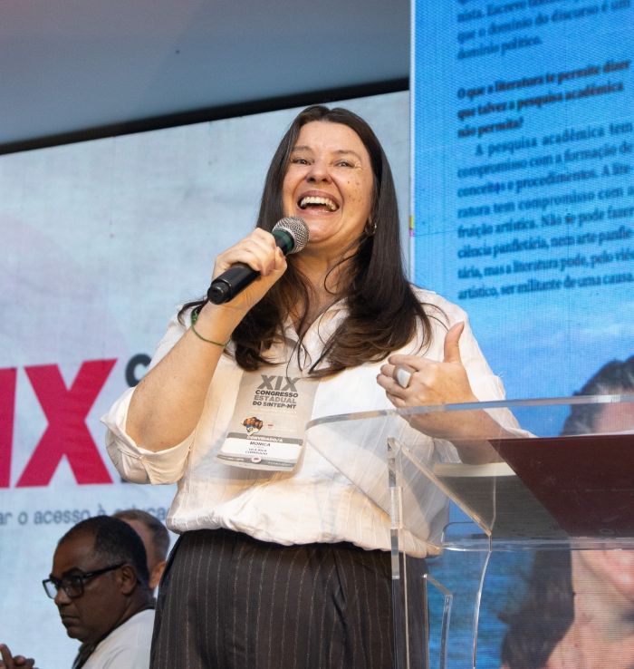 “O XIX Congresso reafirma a continuidade da luta coletiva e a sequência do trabalho em defesa da profissão e da educação. Nada do que construímos seria possível sem a dedicação, a unidade e o compromisso coletivo que marcaram todos os debates e cada encaminhamento”, ressaltou Guelda Andrade, coordenadora geral do Congresso e secretária de Políticas Educacional do Sintep-MT e da Confederação Nacional dos Trabalhadores da Educação (CNTE), no encerramento.